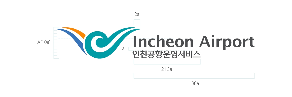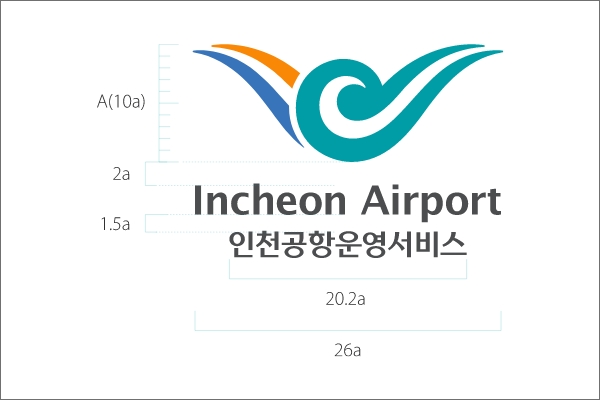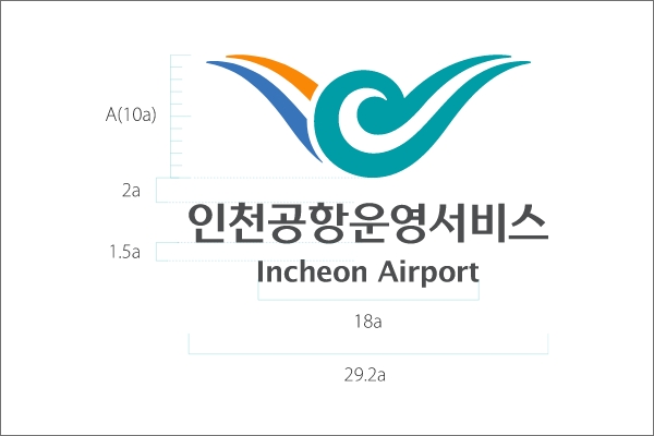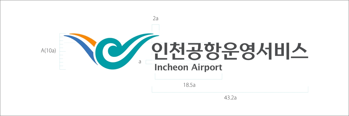 로고타입은 인천공항운영서비스(주)의 공식적인 사명을 표기하기 위해 사용하며 사용시 변형을 막기 위해 정비례로 확대 및 축소하여 사용해야 합니다.